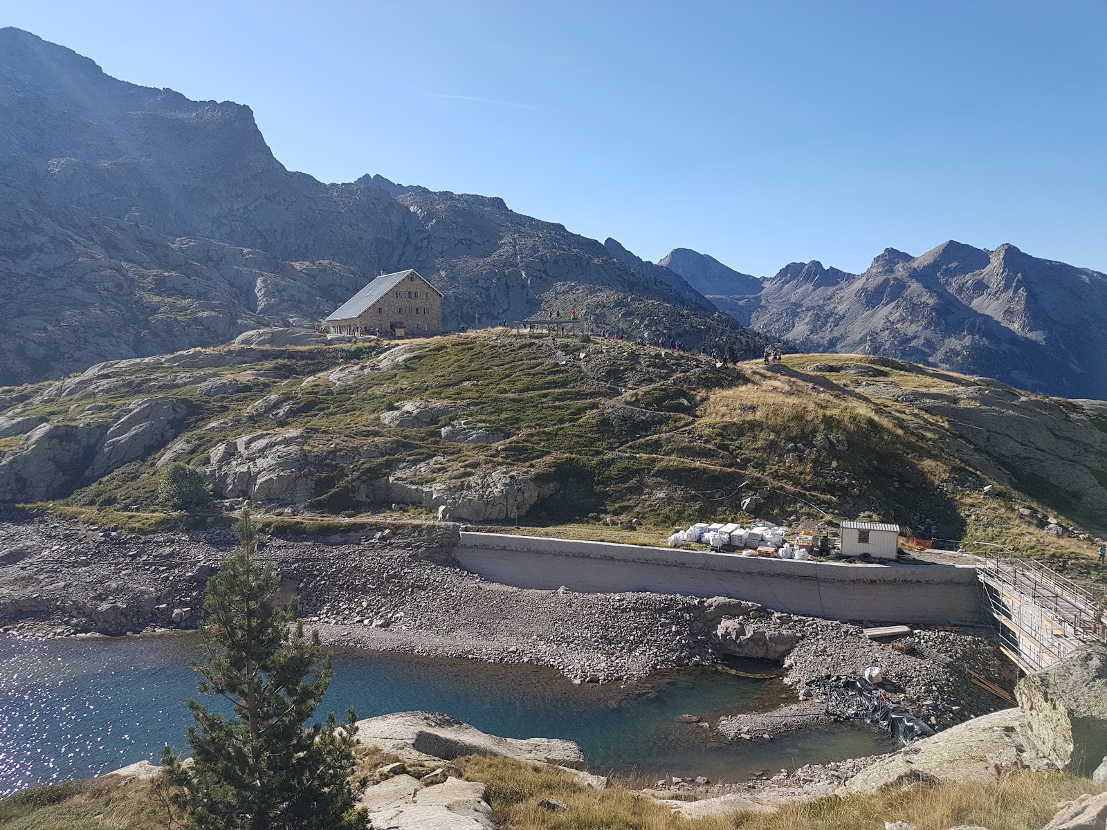 | Refugio de Bachimaña al fondo, nos desviamos a la izquierda dejando el Ibón de Bachinaña a nuestra derecha |